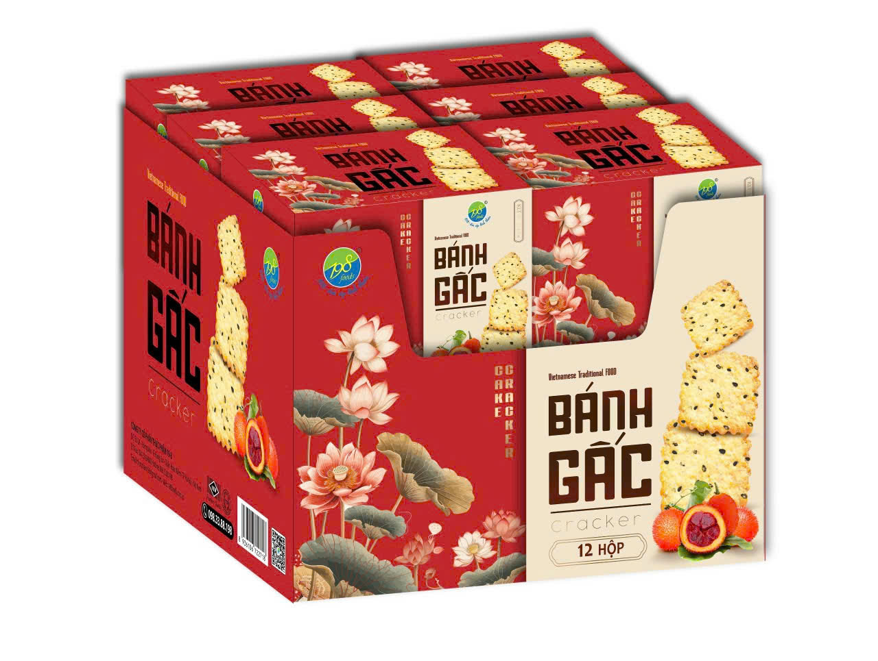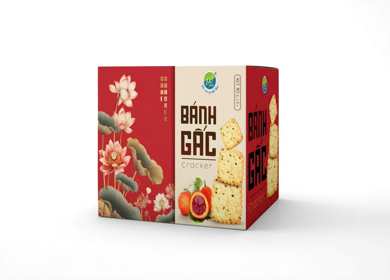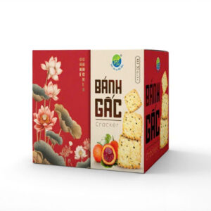 - Bột mỳ, đường kính, bơ, shortening, mạch nha, dầu thực vật, sữa bột, hạt mè (vừng), bột gấc (≤ 0.1%), cơm dừa sấy, trứng, tinh bột bắp, muối, nước sạch, chất điều vị: papain (INS 1101(ii)), hương liệu tổng hợp (hương sữa), chất tạo xốp [amoni hydro carbonat (INS 503(ii)), natri hydro carbonat (INS 500(ii))], chất nhũ hóa: lecithin (INS 322(ii)).